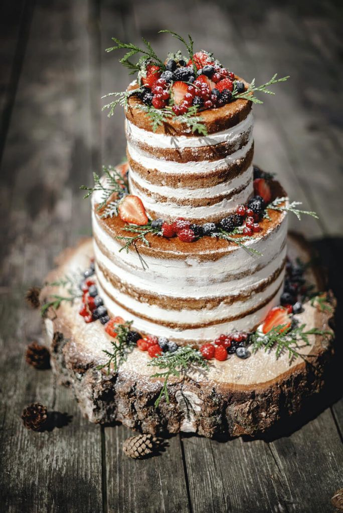 Naked cake: Es una tarta desnuda o, lo que es lo mismo, una tarta de boda que no lleva ningún tipo de cobertura, por lo que deja completamente a la vista las diferentes capas del bizcocho y el relleno.